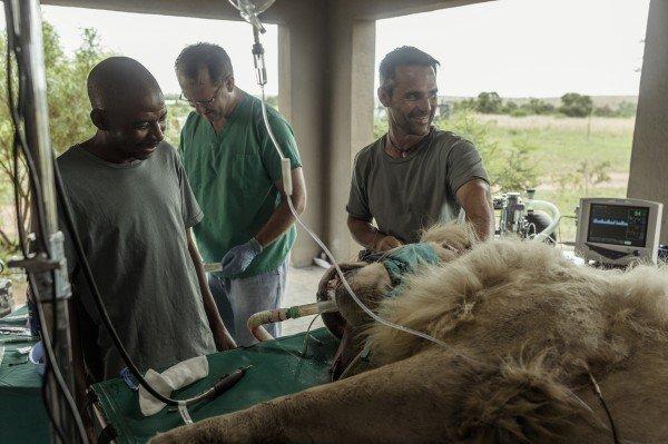 La sala per l’operazione è stata allestita sul posto per non portare Aslan troppo lontano dal suo ambiente naturale ma garantendo la qualità e le prestazioni di un grande e fornito ospedale.