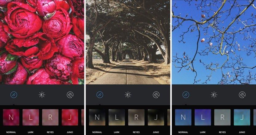 In particolare Lark permette di togliere saturazione al rosso, e migliorare la qualità dei verdi e dei blu; Reyes fornisce un look vintage quasi polveroso; e infine Juno aumenta la temperatura del bianco, rendendo le foto più vibranti.
