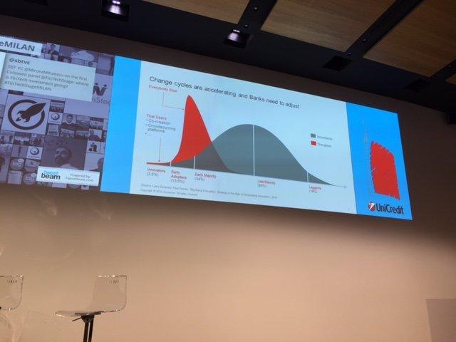 Come evidenziato durante i panel, ad oggi la maggior parte dei fondi investiti in FinTech vanno a finanziare progetti indipendenti, come startup, ed altri interni agli stessi gruppi bancari.