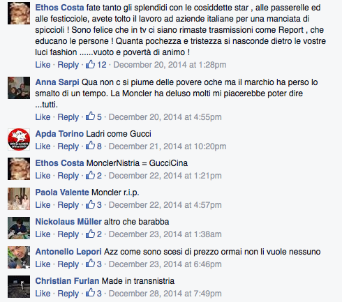 Come si può osservare, alcuni utenti riportavano la notizia anche da siti stranieri: eppure, gli effetti apocalittici previsti non si sono visti. Così come non si sono osservate reali operazioni di risposta alla crisi d'immagine. A parte un comunicato sul sito di prodotto (leggibile ancora oggi, grazie a una sezione dedicata solo sul sito italiano), non sembra esserci stato un particolare intervento da parte di Moncler.