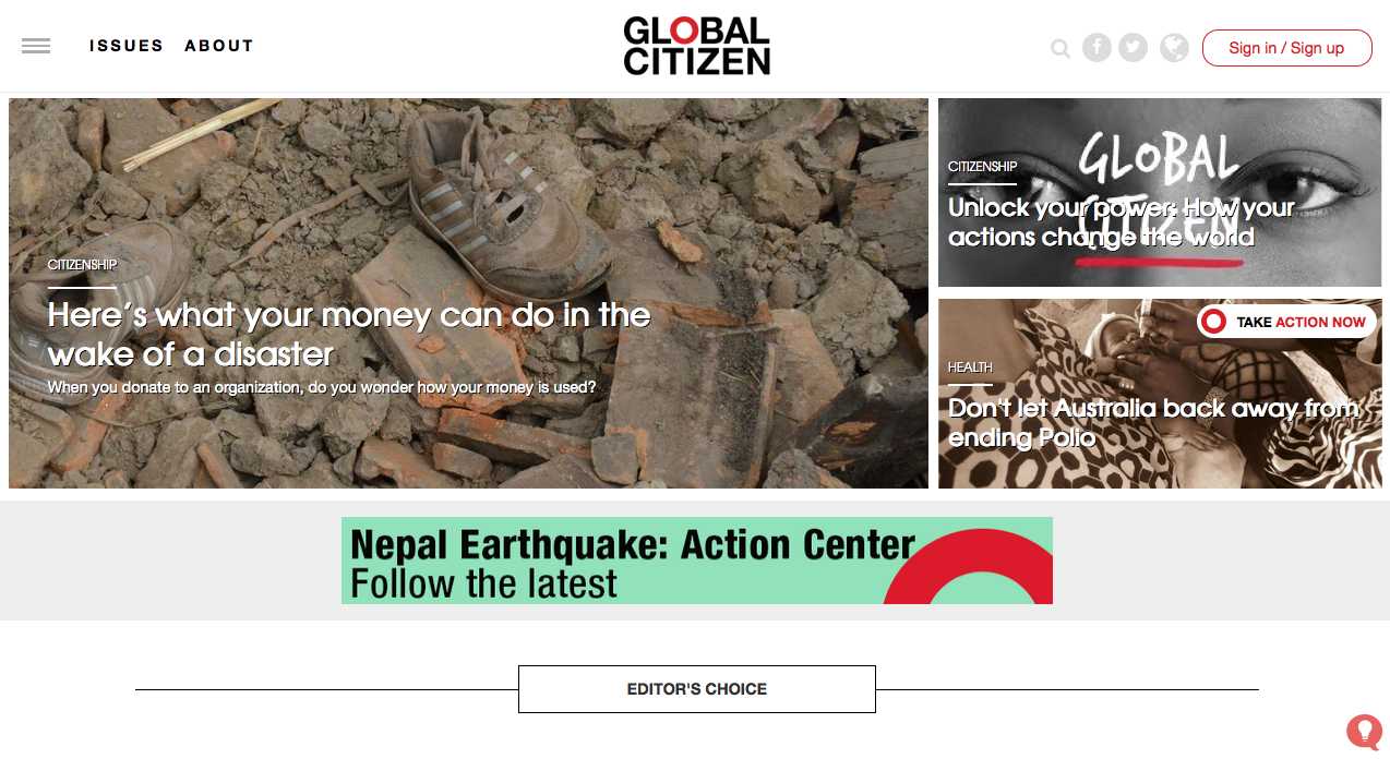 La piattaforma online supportata dalle organizzazioni no-profit e un gruppo eterogeneo di partner aziendali, attraverso contenuti, campagne ed eventi (come concerti e raduni), offre alle persone semplici strumenti per sostenere il cambiamento globale.
