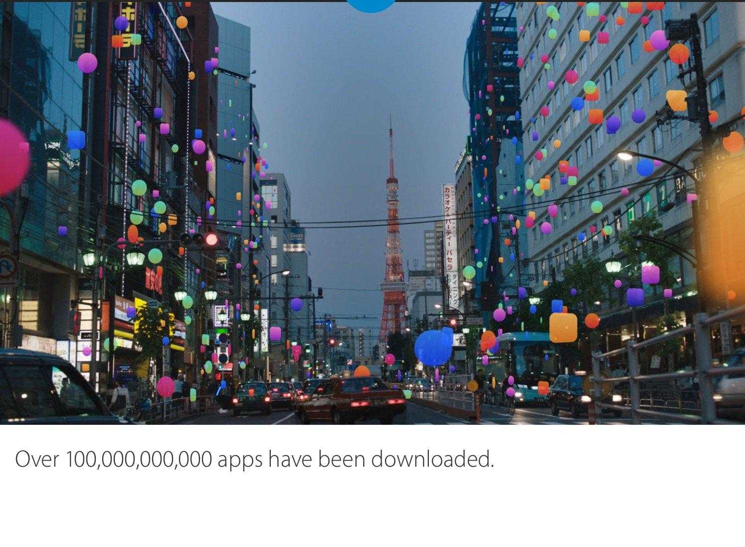 "Ci sono voluti 13 anni perché la televisione raggiungesse i suoi primi 50 milioni di utenti. All'App Store sono bastati 17 mesi", dice Apple, "Le applicazioni sono diventate un catalizzatore per la creazione di nuove industrie".