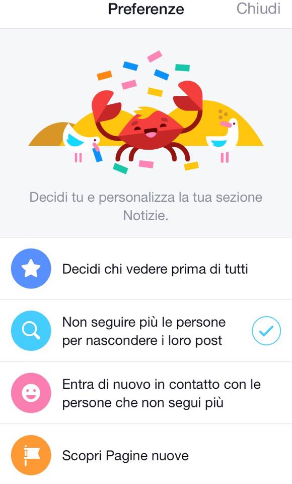 - le persone e le pagine di cui non si vogliono visualizzare i post;