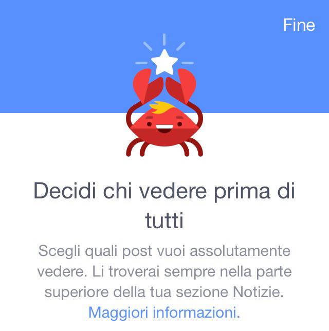 La più interessante delle quattro nuove opzioni è la prima: una funzione facile e intuitiva da gestire per decidere di quali amici visualizzare le notizie prima. Per attivarla, basta cliccare sopra l’icona con l’avatar dell’utente che si vuole seguire e in un attimo il post viene visualizzato in alto nella sezione notizie (una stellina sull’avatar ricorderà quali sono gli amici scelti.). La funzione permette però di selezionare fino a 30 account preferiti, mentre il resto delle notizie sono comunque stabilite e ordinate dal classico algoritmo di Facebook.