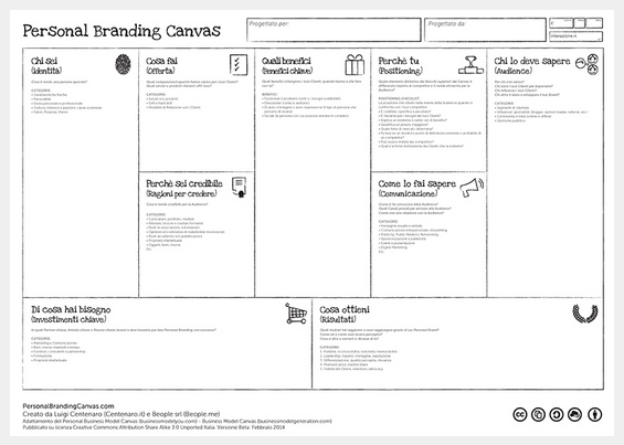 L’idea del Personal Branding Canvas è nata nel momento in cui ho dovuto sviluppare un programma di Personal Branding per un’intera rete di promotori finanziari. Il direttore commerciale desiderava che fossero in grado di far leva sulle loro peculiarità per posizionarsi e relazionarsi con maggior autenticità con il loro “pubblico” tramite gli strumenti digital. Per far ciò occorre imparare a pensare in maniera strategica ma serviva uno strumento capace di semplificare e rendere tutto più pratico. Del resto i partecipanti ai miei corsi non sono interessati ad imparare la teoria del Branding ma a cose molto più concrete quali attrarre opportunità, vendere di più, farsi conoscere, posizionarsi, etc. etc.
