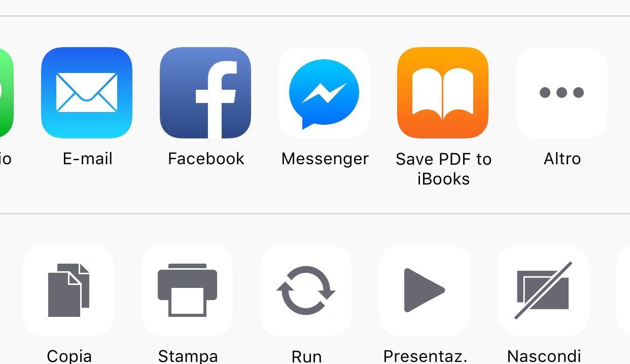 12. Salvare sito in PDF - Potete ora salvare una copia in pdf della pagina che state visitando selezionando il tasto in basso Condividi e poi inviando la copia in PDF a iBooks.