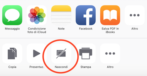12. Salvare sito in PDF - Potete ora salvare una copia in pdf della pagina che state visitando selezionando il tasto in basso Condividi e poi inviando la copia in PDF a iBooks.