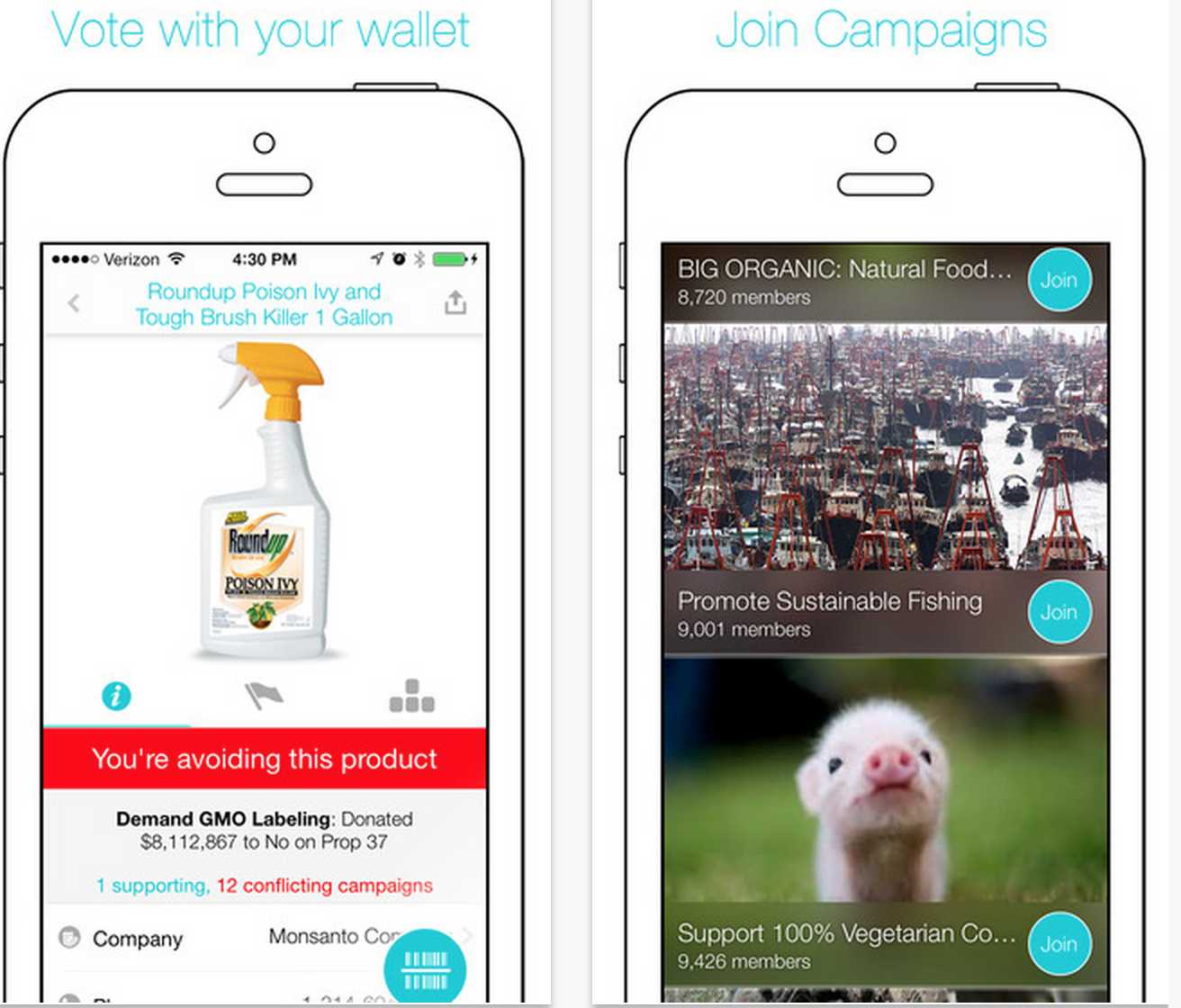 Attraverso Buycott, ma non solo, puoi tenerti sempre informato e agire nei tuoi acquisti con coscienza, venendo a scoprire, attraverso la scansione del codice a barre, se quel bene che stai per comprare è prodotto nel rispetto di determinati parametri come il rifiuto del lavoro minorile o l'immissione di agenti tossici nell'ambiente durante il processo produttivo. All'interno della app è possibile scoprire la posizione di determinate aziende e multinazionali sugli OGM, sulla sperimentazione sugli animali e così via.
