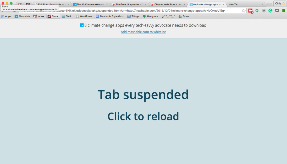 Lavorando al computer per tante ore, come noi digital addicted della sezione Tech di Ninja Marketing siamo soliti fare, capita che le performance della macchina rallentino ed ecco che entra in gioco The Great Suspender. Un’ancora di salvezza che installata permette di sospendere le schede non utilizzate dopo un periodo di tempo specificato dall’utente, ottenendo quindi un risparmio di RAM prezioso. Se hai un pc con almeno 4 GB di RAM, The Great Suspender accelererà la tua vita!