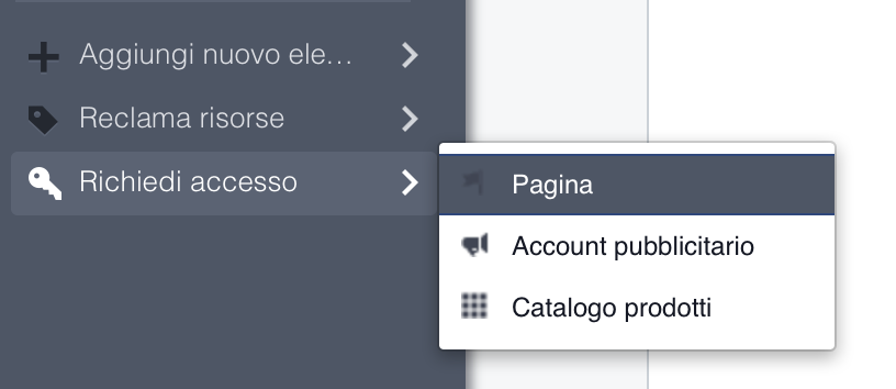 Se non possedete la risorsa, ma dovete solo gestirla dal vostro Facebook Business Manager (specialmente nel caso di un account pubblicitario) dovrete richiederne l’accesso.