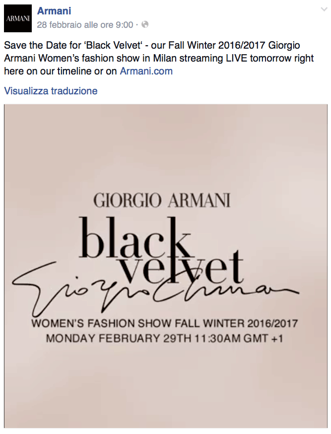 Lo stesso fa Valentino che, nonostante abbia scelto la città francese per il suo show, rimane pur sempre italiano sia nello stile che nelle strategia. A differenza dei brand francesi, Valentino ha messo in atto una buona strategia pubblicizzando innanzitutto il pre-show attraverso post e video su Instagram in cui è raffigurato il tragitto di un ospite che prende parte alla sfilata con l’invito in mano, e poi invitando gli utenti a guardare la catwalk in diretta sul sito ufficiale.