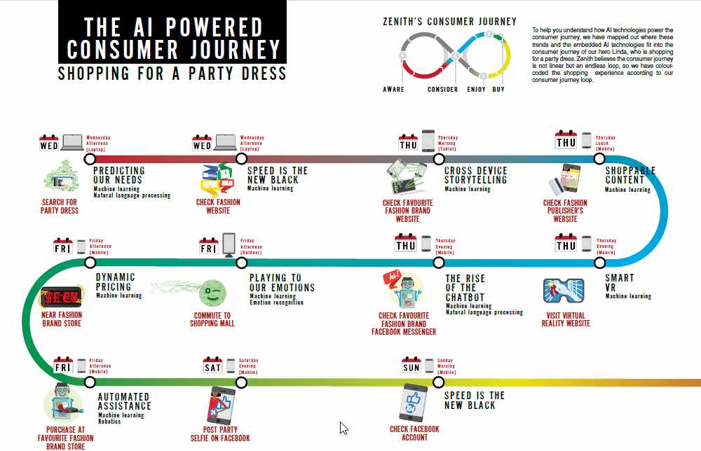 Il report “Zenith’s 2017 Trends. Artificial Intelligence; Powering the Customer Journey” che la ROI agency globale ha recentemente pubblicato è molto interessante anche perché è applicato a nostra insaputa da molte aziende con le quali ci relazioniamo quando acquistiamo qualcosa.