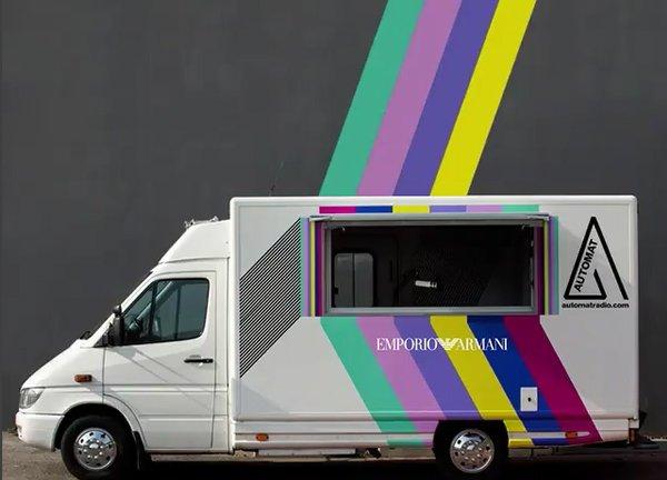 Una radio online all’interno di un music truck. Con questo format innovativo e itinerante Emporio Armani ha proposto un modello di intrattenimento culturale molto particolare durante la dodicesima edizione del Design Week Festival.
