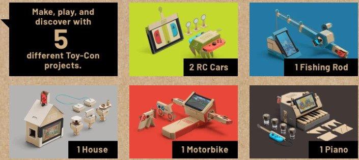 Al momento Nintendo ha presentato due kit: un Kit Base, con il quale è possibile creare una casa, una canna da pesca, una moto, un pianoforte e una macchina telecomandata; e un Kit Robot che permette di assemblare una vera e propria tuta da robot per vivere un’esperienza di gioco ancora più immersiva. Un terzo kit, invece, permette a tutti i giocatori grandi (perché siamo sicuri che anche gli adulti rimarranno affascinati da Nintendo Labo) e bambini di personalizzare le proprie creazioni con pennarelli e adesivi colorati, rendendo ancora più unica l’esperienza di gioco.