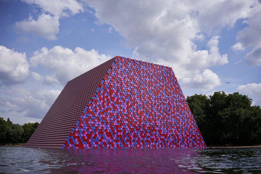 Christo è sbarcato a Londra, precisamente sul lago di Hyde Park. Il 15 giugno è stata infatti inaugurata la sua prima grande opera pubblica nel Regno Unito, “The London Mastaba”: la scultura temporanea galleggiante sul lago Serpentine, realizzata da migliaia di barili di petrolio impilati.