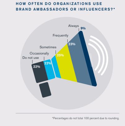 La misura in cui la reputazione è diventata una risorsa preziosa per le società può essere visto proprio nella diffusione dell'adozione di strategie di influencer marketing, utilizzate in una certa misura per promuovere il brand dal 78% delle aziende intervistate.