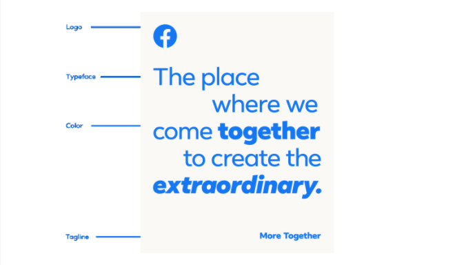 Il brief richiedeva un nuovo look & feel universale per il marchio, in grado di catturare l’essenza del prodotto e riflettere la visione secondo cui Facebook eleva il mondo attraverso community sicure e inclusive: le persone possano fare e ottenere di più sia insieme che da sole.